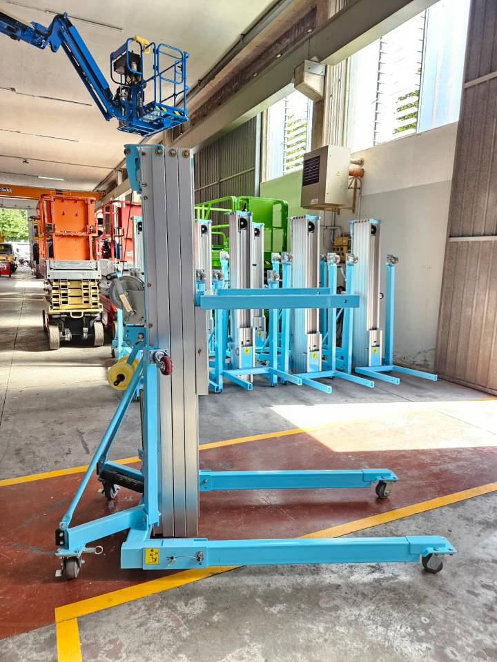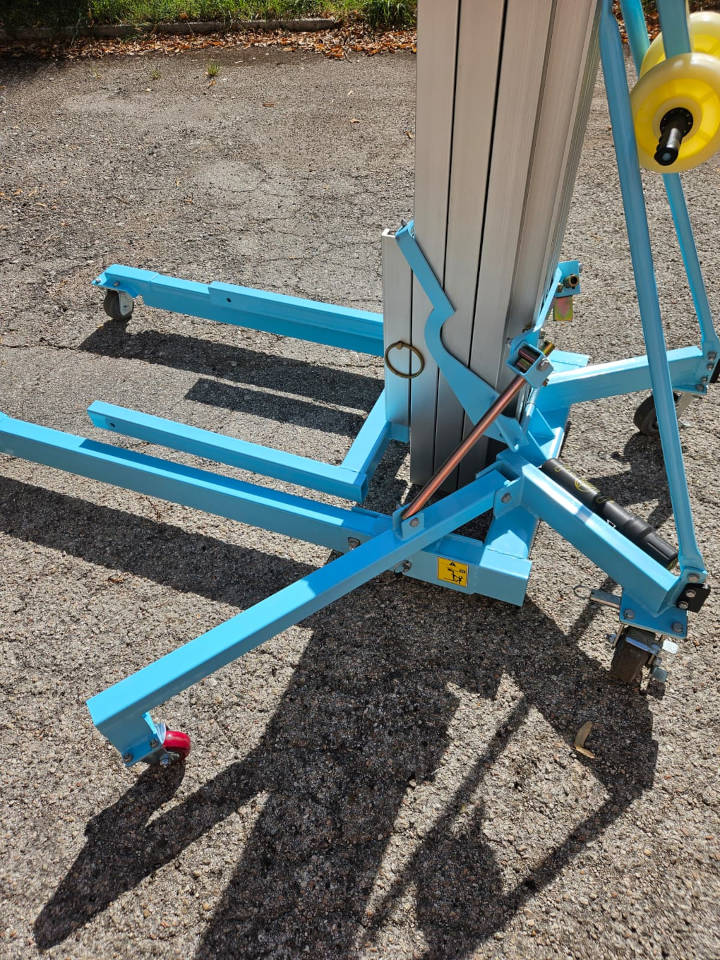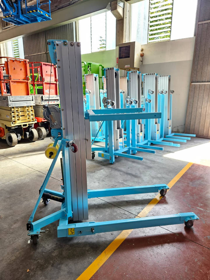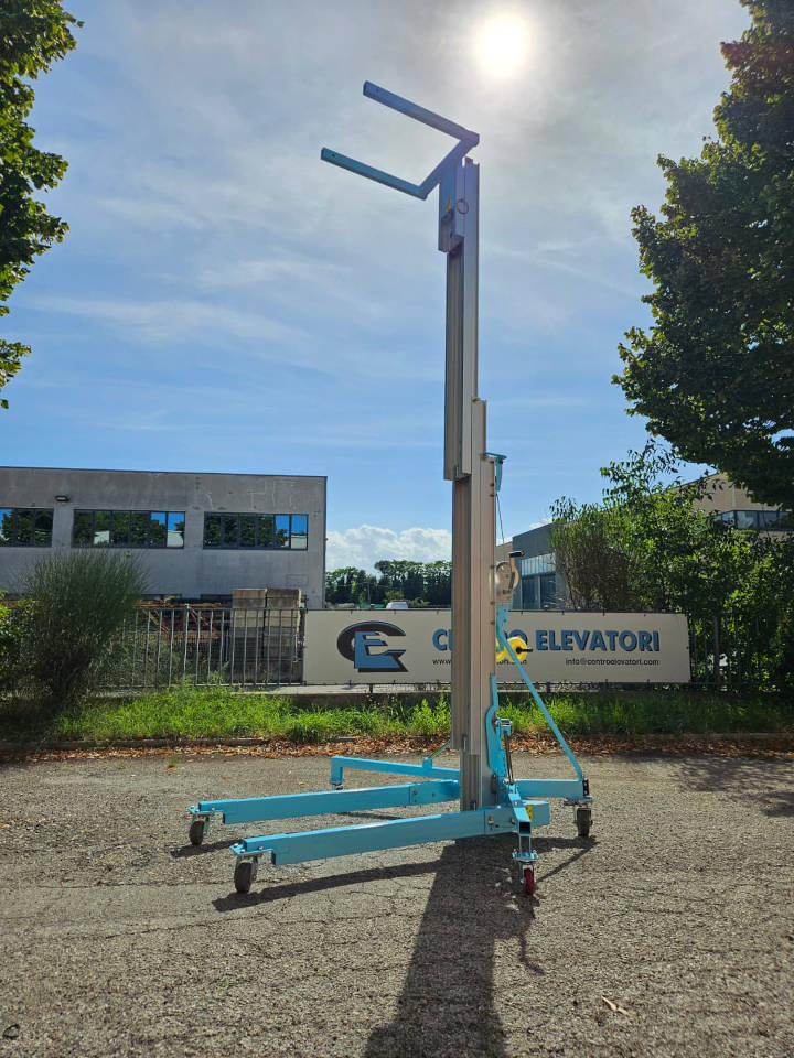 The AML Vertical Material Lift manual material lift is designed to be versatile. It can be easily transported and loaded onto a van by just one person thanks to its special loading system. It is very compact and can easily be made to pass through doors. It is widely used for the installation of refrigeration units, air conditioners, plasterboard, cemetery sectors and much more.