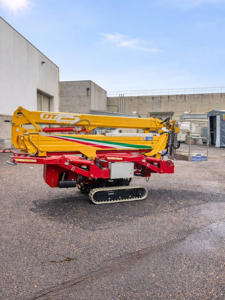 Questa piattaforma aerea cingolata Cela DT Crawler 25 è una piattaforma usata dell’anno 2021. La piattaforma Cela DT 25 è dotata di un cestello porta persone in grado di sostenere 230 kg e di un ganico per sollevamento materiali di 260 kg , che garantisce lo svolgimento delle operazioni in maniera semplice e sicura. La piattaforma cingolata Cela DT Crawler 25 raggiunge un’altezza di lavoro massima di 25 metri, con uno sbraccio fino a 12 metri. Questa piattaforma usata “ragno” ha 2000 ore di lavoro effettive. Ottime condizioni generali.