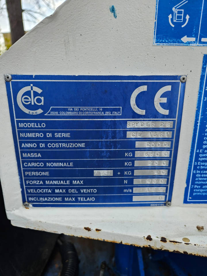 This Cela Spyder 28 spider tracked platform is a used platform of the year 2000. The spider platform Cela Spyder 28 is equipped with a basket with capacityof 200 kg, which guarantees the carrying out of operations in a simple and safe way. The Cela Spyder 28 Spider tracked platform reaches a maximum working height of 28 meters, with a horizontal outreach of 13 meters. This used spider platform has 6000 working hours. Excellent general conditions.