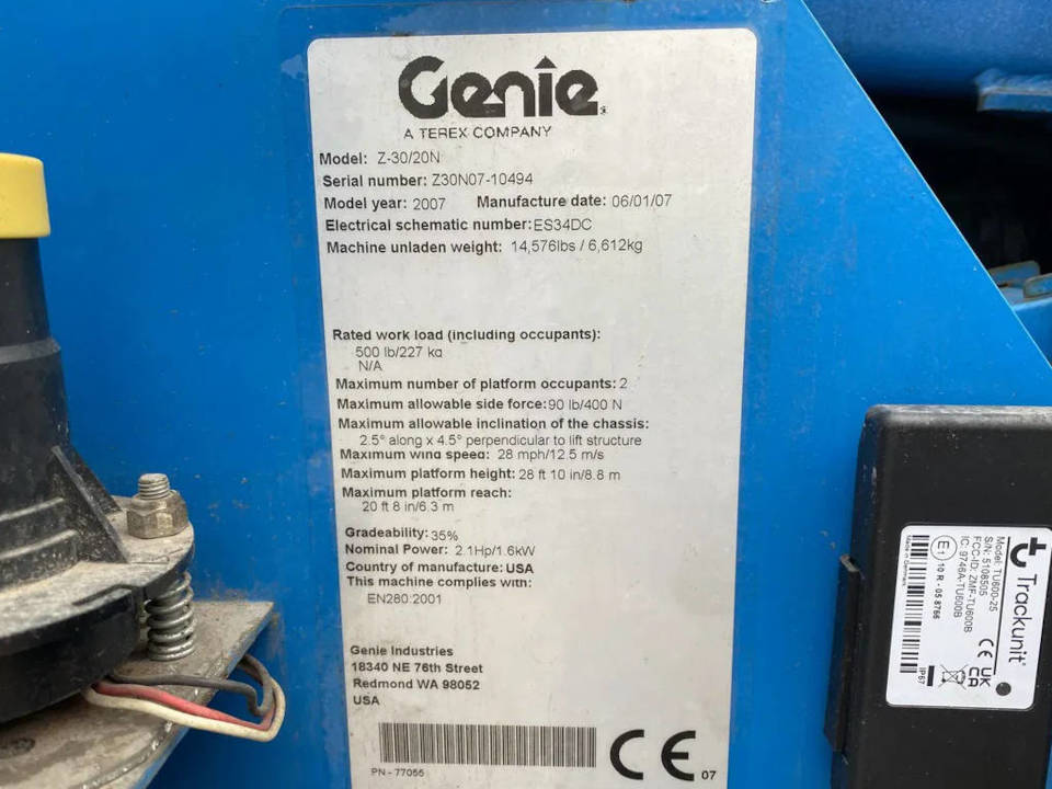 La plataforma Genie Z 30/20 NRJ es una plataforma articulada autopropulsada del año 2007. Esta plataforma está equipada con dos brazos más uno telescópico y un JIB que hace lo positivo y lo negativo. La cesta lleva 227 kg. El Genie Z 30/20 NRJ es ideal para trabajos en espacios confinados. Tiene un ancho de solo 1,20 m. Tiene fuente de alimentación. La plataforma autopropulsada Genie alcanza una altura de trabajo de 11 metros, con un alcance de 6,40 metros. Esta plataforma aérea autopropulsada tiene 1000 horas y es ampliamente utilizada en muchas industrias y muchos grandes inquilinos. Controlado por taller autorizado GENIE