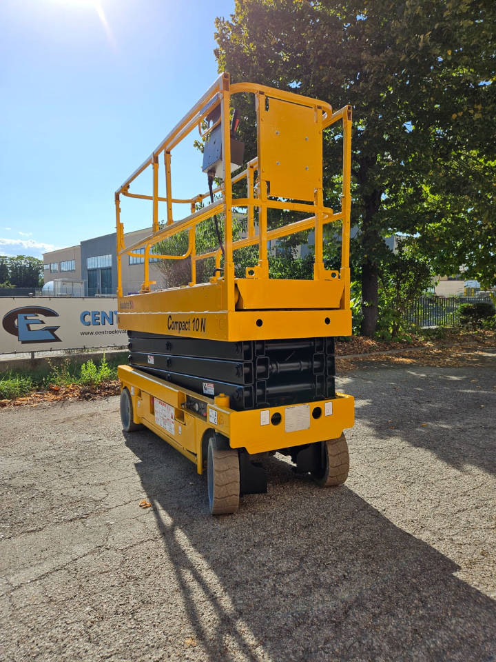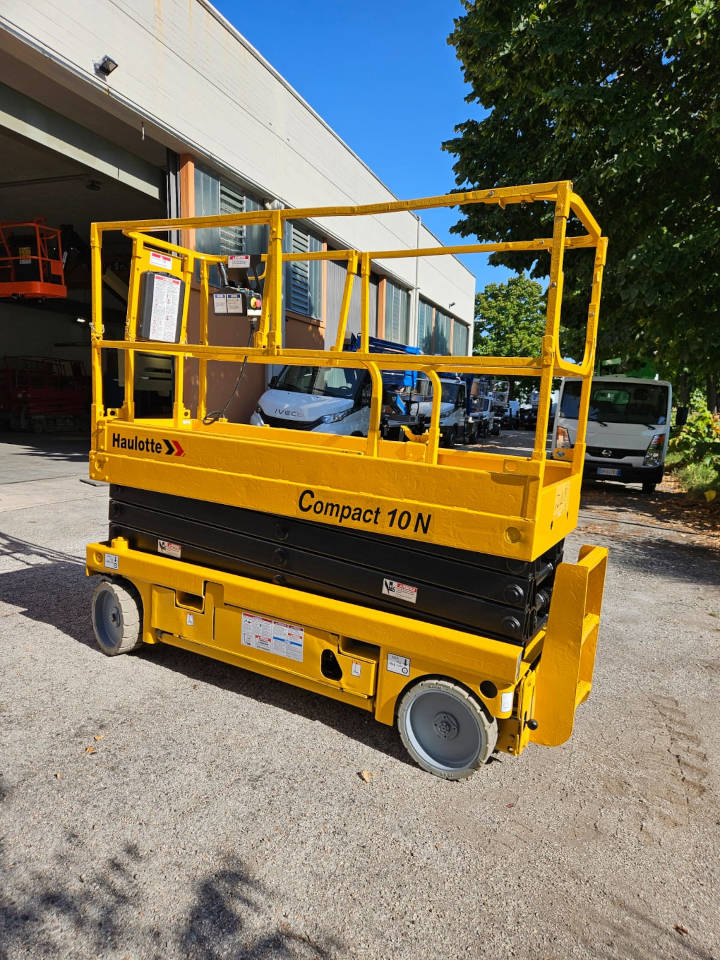 The Haulotte Compact 10 N scissor lift is a used aerial work platform, year 2006. The Haulotte Compact 10N platform has a man basket with 230 kg. lifting capacity. This used platform guarantees simple and safe maneuvers. The scissor lift reaches a working height of 10 meters. The “scissor” platform is very compact and allows movements in confined spaces. Very used in industry, electrical systems, painting, air conditioning systems. Working hours 1139. Refurbished and with all documents.