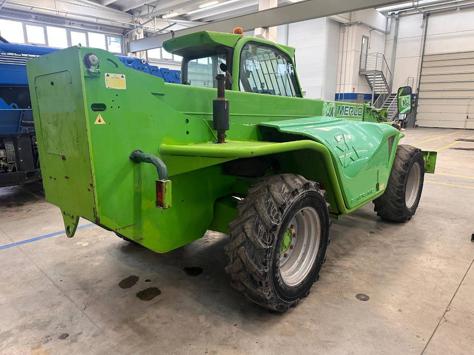 El Merlo P4017 es un manipulador telescópico usado del año 2011. Este MERLO P 40.17 garantiza maniobras sencillas y seguras y alcanza una altura de 17 metros. Tiene una capacidad de 4000 kg y está equipado con un gancho para levantar materiales y horquillas. El manipulador telescópico Merlo 40.17 se utiliza en grandes obras de construcción y carreteras, puentes y obras en general donde se requiere el levantamiento en espacios pequeños. 7900 horas de trabajo. Buenas condiciones generales, controladas, con todos los documentos.