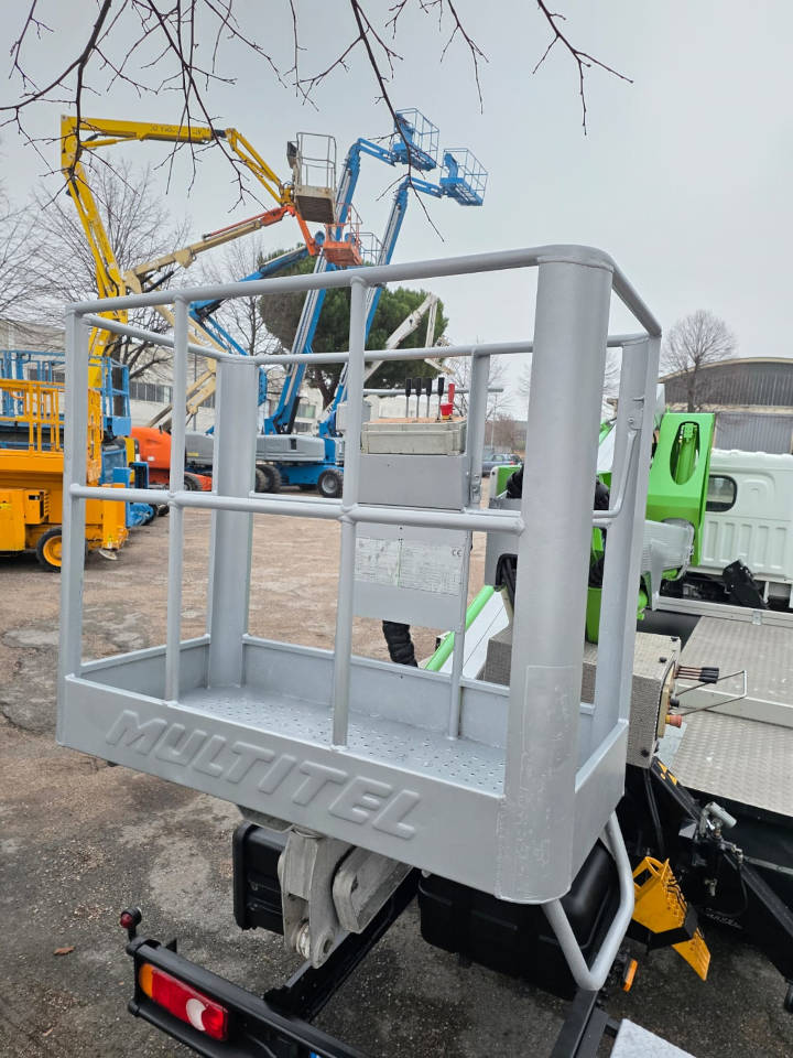 The MULTITEL 195HX platform is a used truck mounted platform of 2012. The platform is equipped with a man basket with 200 kg of capacity lifting, which ensures that operations are carried out easily and safely. This truck mounted platform reaches a maximum working height of 20 meters, with a horizontal outreach of 9,5 meters. The platform has 5100 hours of effective work. Excellent general conditions.