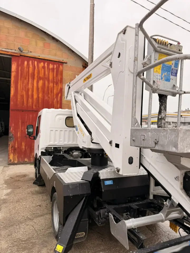 The PALFINGER P240A platform is a used truck mounted platform of 2017. The platform is equipped with a man basket with 200 kg of capacity lifting, which ensures that operations are carried out easily and safely. This truck mounted platform reaches a maximum working height of 23,2 meters, with a horizontal outreach of 10,7 meters. The platform has 7700 hours of effective work. Excellent general conditions.