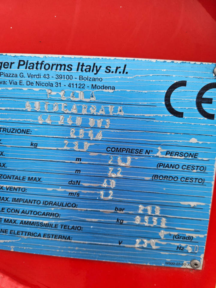 The PALFINGER P240A platform is a used truck mounted platform of 2014. The platform is equipped with a man basket with 200 kg of capacity lifting, which ensures that operations are carried out easily and safely. This truck mounted platform reaches a maximum working height of 23,2 meters, with a horizontal outreach of 10,7 meters. The platform has 3300 hours of effective work. Excellent general conditions.