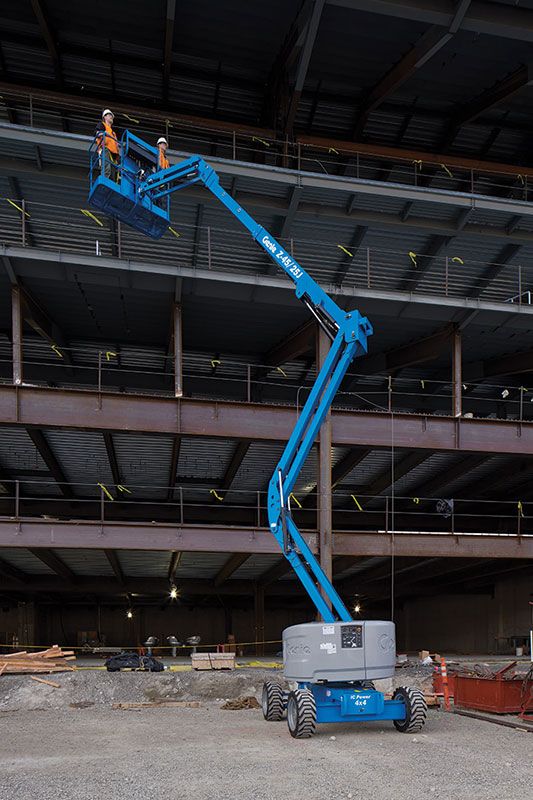 La Genie Z-45/25J RT è una piattaforma a braccio articolato pensata per garantire massima affidabilità nei cantieri all’aperto e nelle applicazioni industriali più impegnative. Grazie alla trazione a quattro ruote motrici (4WD) e all’assale oscillante attivo permanente, la macchina assicura elevata stabilità e aderenza anche su superfici sconnesse o accidentate.