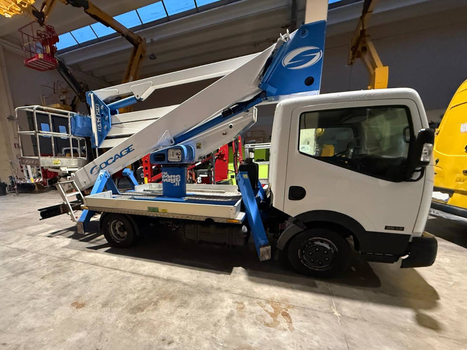 La SOCAGE DA 324  è una piattaforma autocarrata usata del 2017. La piattaforma è dotata di un cestello porta persone in grado di sostenere 225 kg, che garantisce lo svolgimento delle operazioni in maniera semplice e sicura. Questa piattaforma aerea su camion SOCAGE  raggiunge un’altezza di lavoro massima di 24 metri, con uno sbraccio fino a 9,5 metri. La piattaforma ha 5000 ore di lavoro effettive. Ottime condizioni generali.