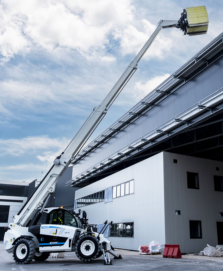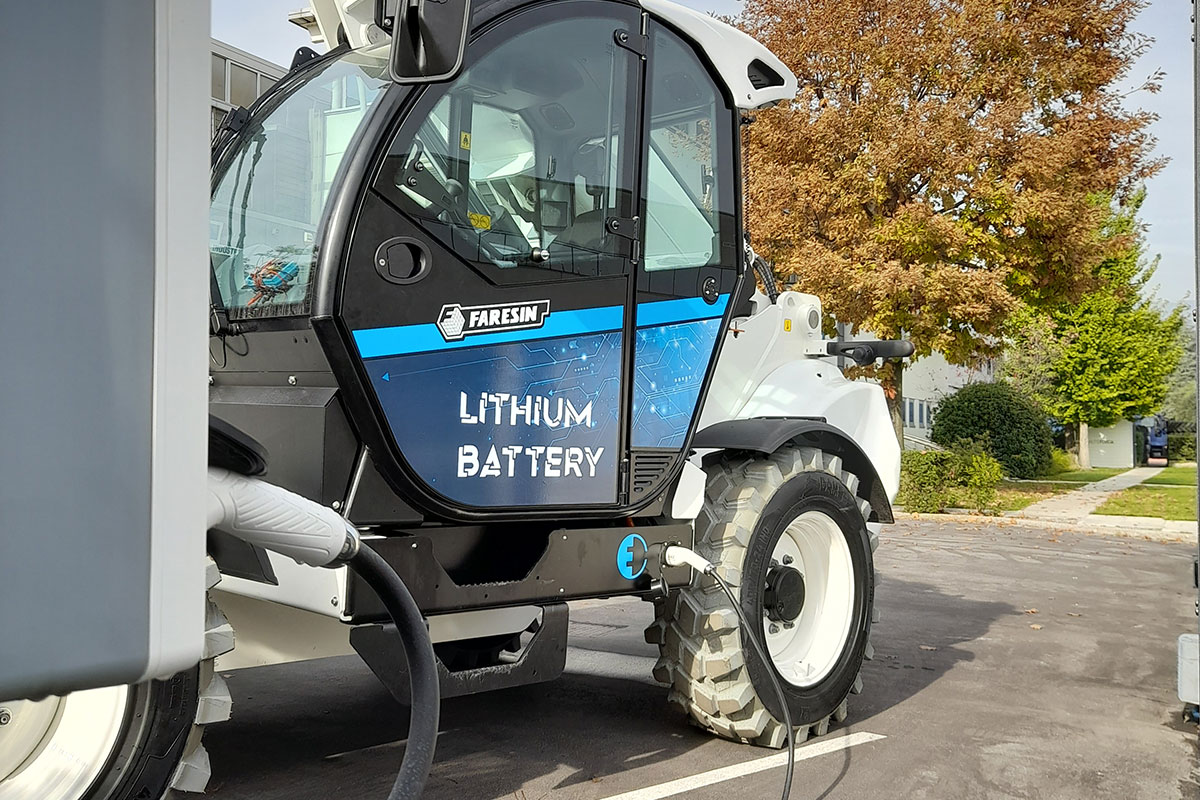 Il pacco batterie agli ioni di litio da 45 kWh a 435 V alimenta due motori elettrici: 51 kW per la trasmissione e 23 kW per i servizi idraulici. L’erogazione della potenza avviene solo quando richiesta, ottimizzando i consumi e aumentando l’autonomia. La forza di trazione di picco raggiunge 44,3 kN e la velocità massima arriva a 25 km/h grazie al cambio a due marce.