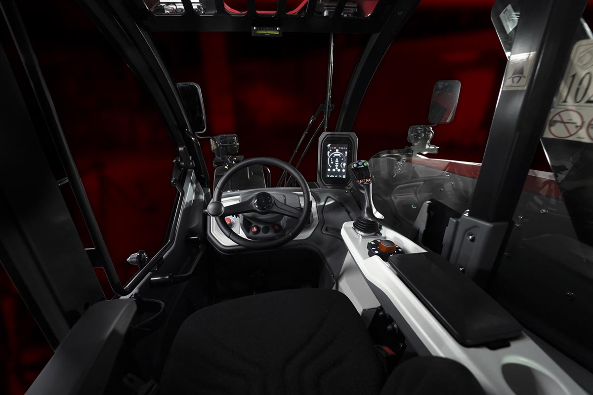 La cabina garantisce visibilità a 360° e comfort superiore, con certificazioni ROPS e FOPS, sedile a sospensione pneumatica e comandi ergonomici disposti secondo una logica funzionale. Il sistema idraulico flow sharing proporzionale assicura movimenti fluidi e precisi, mentre la valvola Ecofast migliora la rapidità del braccio anche a bassi regimi.